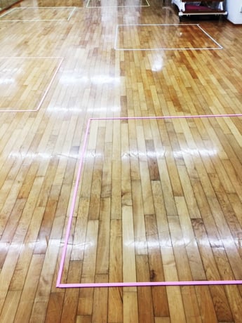 そこで、当スタジオでは、写真の様な目印を設ける事で、生徒様は自分のスペースを作ってその中で着替えたり思いっきりダンスしたりしています。